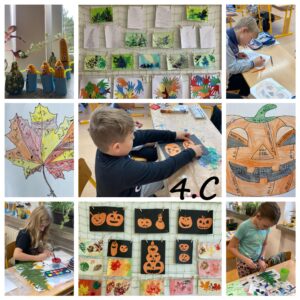 Jedno z nejbarevnějších ročních období vstoupilo do výuky všem třídám na 1. stupni. Podzimní aktivity nás provázely všemi vyučovacími hodinami. Děti během vyučování kreslily, stříhaly, lepily, zpívaly a tancovaly nebo také pracovaly na PC. Jiné sklízely, krájely a ochutnávaly ovoce a zeleninu či pekly chléb. Výsledky našich prací si můžete prohlédnout v přiložených fotokolážích.