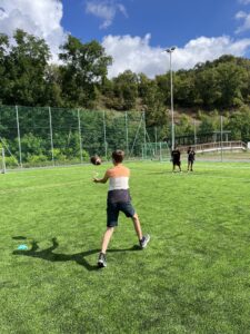 vyzkoušet běh s míčem, nahrávky, strhávání pásků (flagů) a další zábavné drilly.