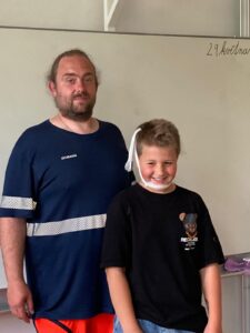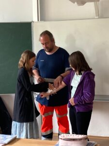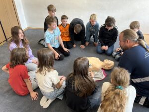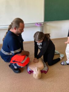 Ve čtvrtek 29.5.2025 naši školu navštívil profesionální záchranář, který si pro žáky 5. ročníku připravil přednášku o první pomoci. Vysvětlil nám, jak správně přivolat záchrannou službu a které důležité informace při tomto telefonátu říct. Naučili jsme se, jak postupovat v různých krizových situacích – například při bezvědomí, dušení nebo silném krvácení. Vyzkoušeli jsme si masáž srdce na figuríně, kterou si přinesl s sebou. Přednáška byla velmi zajímavá a užitečná – záchranář mluvil srozumitelně, mohli jsme se ptát na různé věci. Díky této návštěvě víme, že i děti mohou někomu zachránit život.